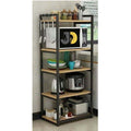 Wood and Metal Multi-Tier Kitchen Shelf with Hooks
